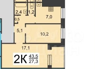 2-к квартира 43,5 м² | 3 этаж | Ипотека | Отличная планировка