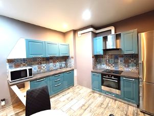 - Кухня:отличный функциональной гарнитур от "Кухня Мария";встроенная варочная панель с духовым шкафом и вытяжкой -всё в идеальном состоянии,отличный холодильник "Liebherr",микроволновая печь,столовая группа из круглого стола и четырех очень удобных стульев.
