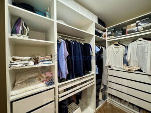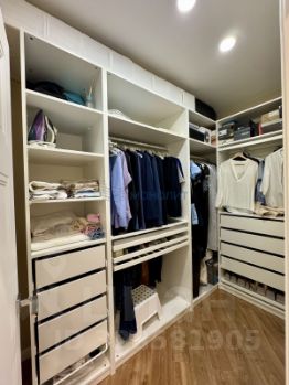 Вместительная гардеробная площадью 4.2 м2 оборудована системой хранения одежды.