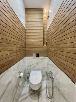 Ванная и туалет в плитке раздельные: установлен гигиенический душ, теплый пол, бойлер на 80 л., защитная система от протечки, испанская плитка, швейцарская ванная, сантехника Грое и АМ-РМ, смесители с терморегулятором.
