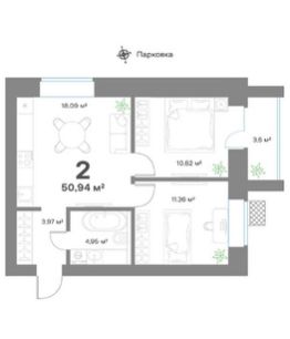 Общая площадь50,94 м²