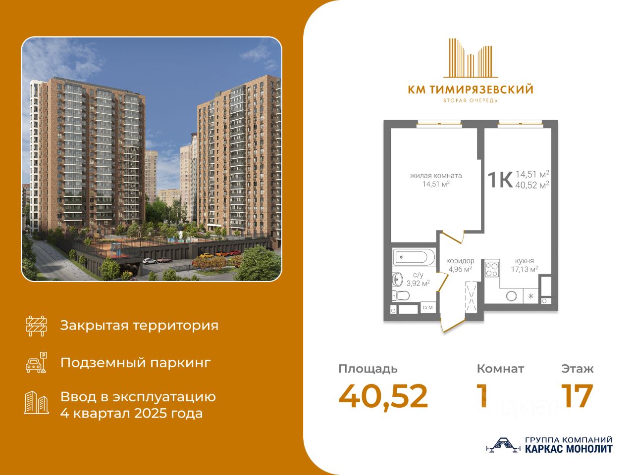 Общая площадь40,52 м²