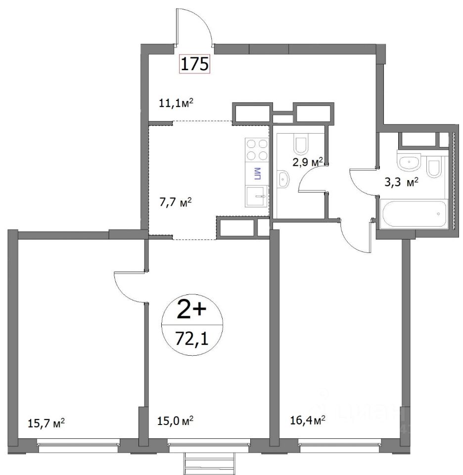Общая площадь72,1 м²