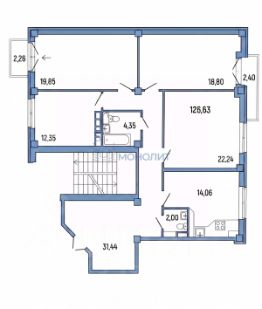 • Основной санузел (4.35 м²) с ванной.