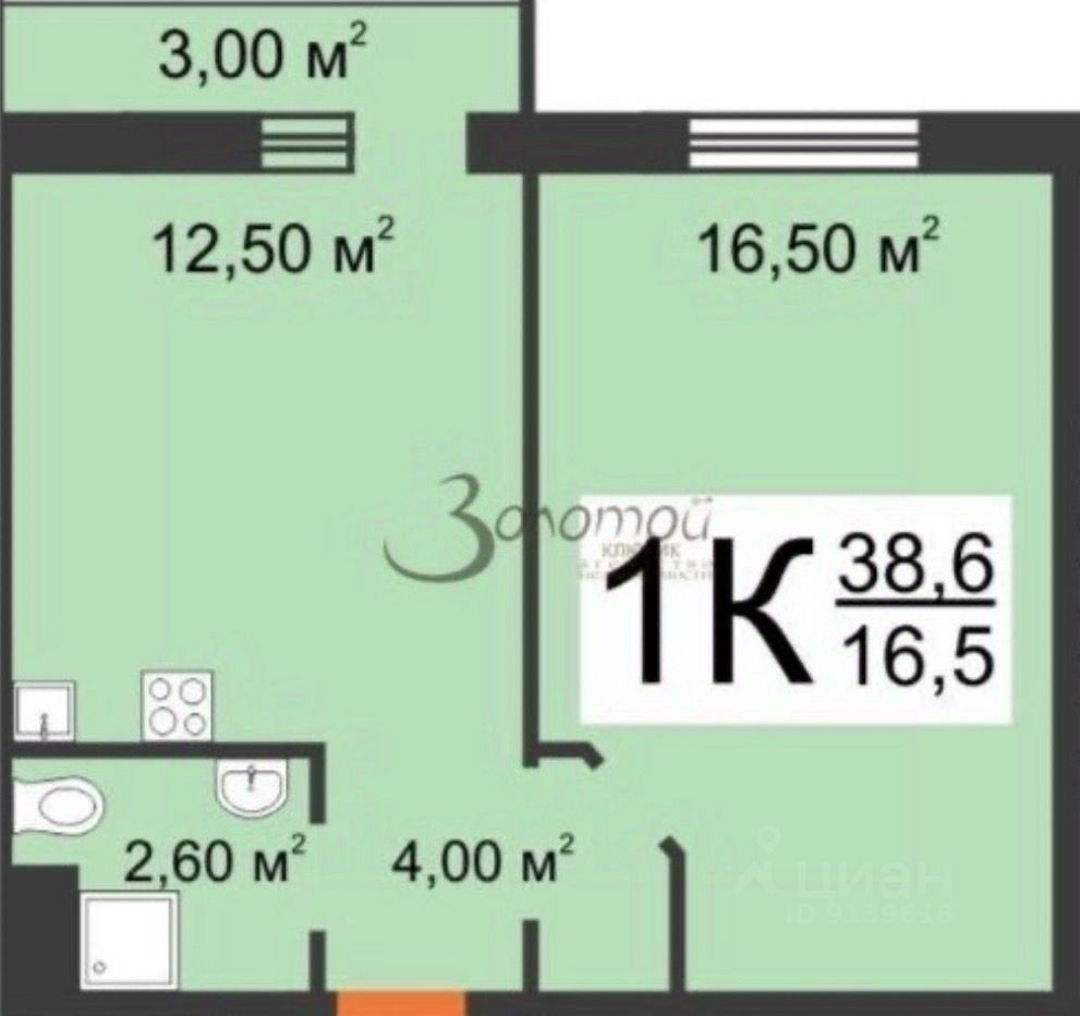 Жилая комната: 16,5 м2.