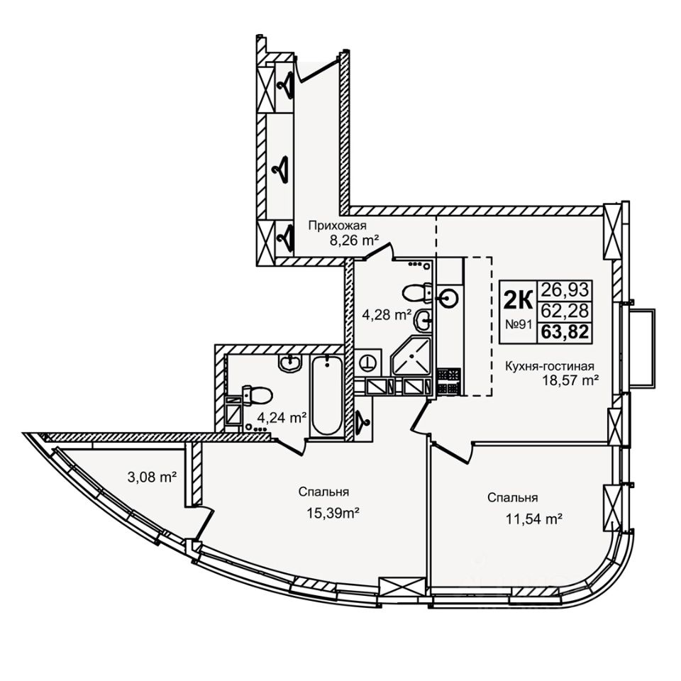 Общая площадь63,82 м²