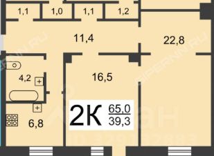 63,4 м²