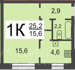 • Комната: 15,6 м² | Кухня: 4,6 м²