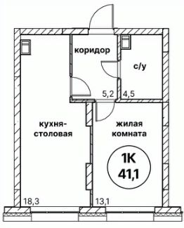 Общая площадь41,3 м²
