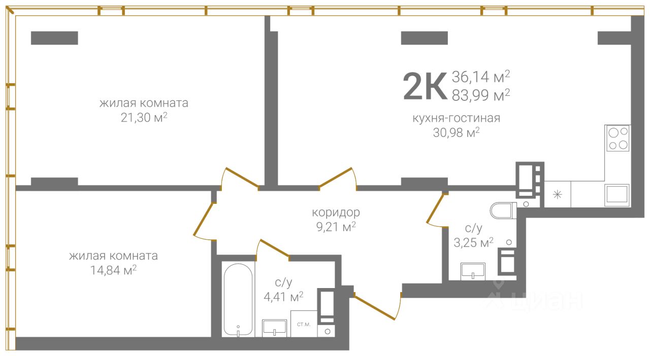 Продаётся 2-комнатная квартира в строящемся доме (Дом 3 ), срок сдачи: II-кв. 2027, общей площадью 83.99 кв.м., на 24 этаже. Новый жилой комплекс "КМ Печерский" от застройщика "ГК Каркас Монолит" расположен по адресу Россия, Нижний Новгород, Казанское шоссе.
