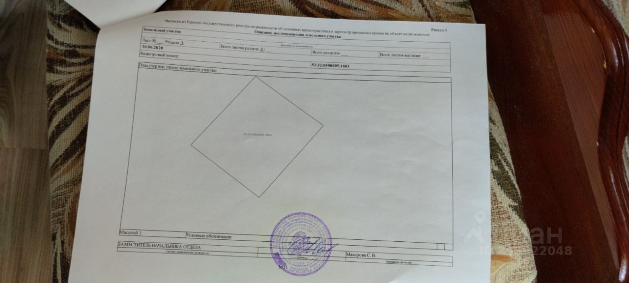 Кадастровый номер участка 52:32:0500005:*** указал продавец