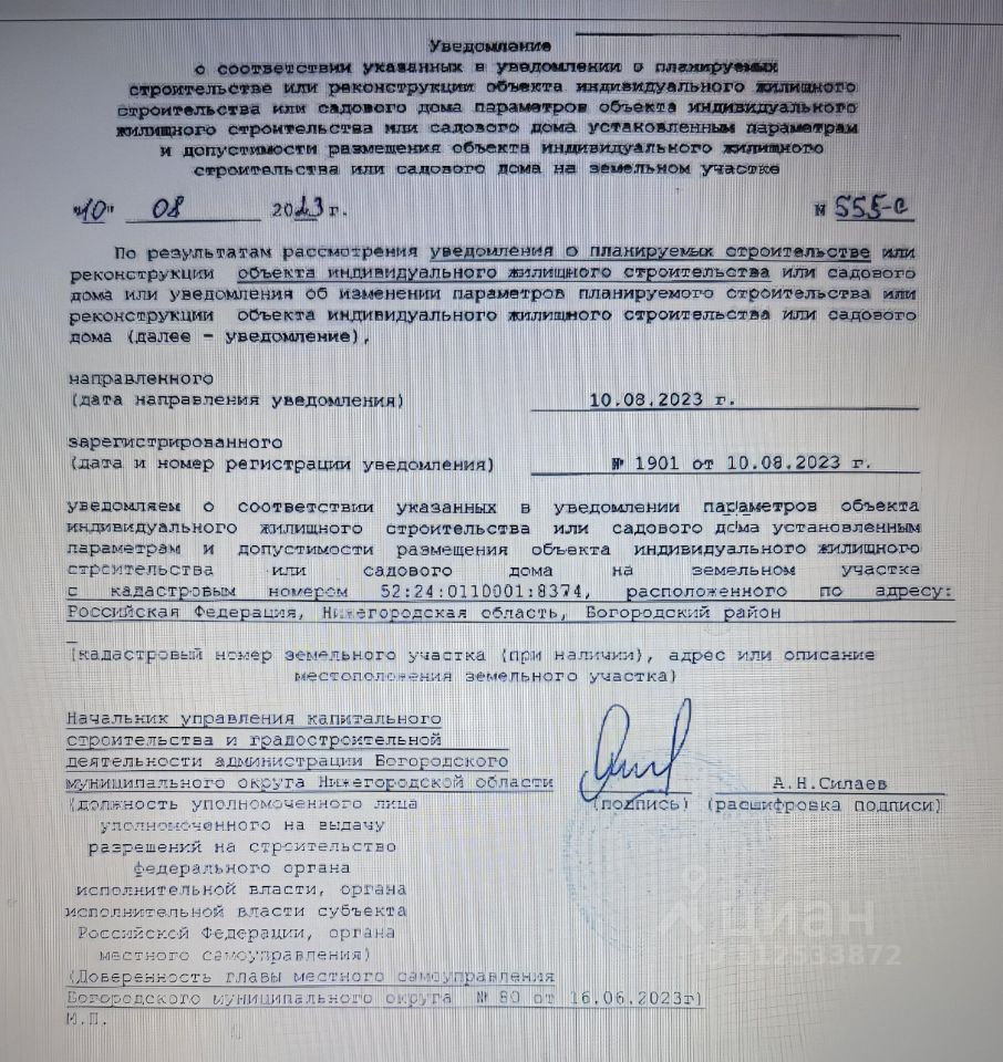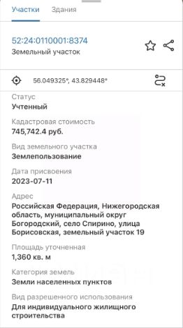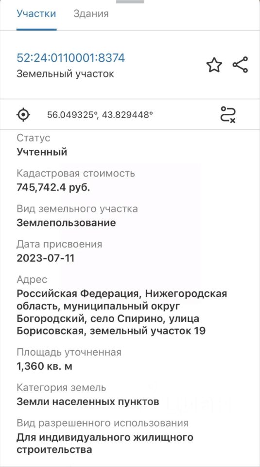 Кадастровый номер участка 52:24:0110001:*** указал продавец