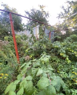 Участок огорожен забором, расположен сзади дома, под наклоном, от основания дома уходит наверх.