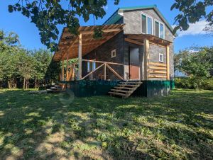 Дом стоит на сваях, сэндвич сделан из OSВ плит, утеплён 150-м утеплителем Кнауф, отделка фасада — гибкая черепица, крыша выполнена из металлочерепицы.