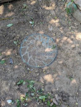 Участок огорожен забором с большими воротами.