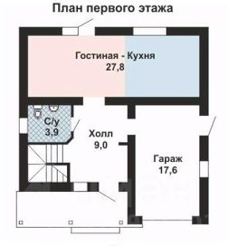 Первый этаж: светлая кухня-гостиная, санузел, холл и гараж
