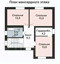 Второй этаж: мастер-спальня с гардеробной, две дополнительные комнаты, санузел и холл