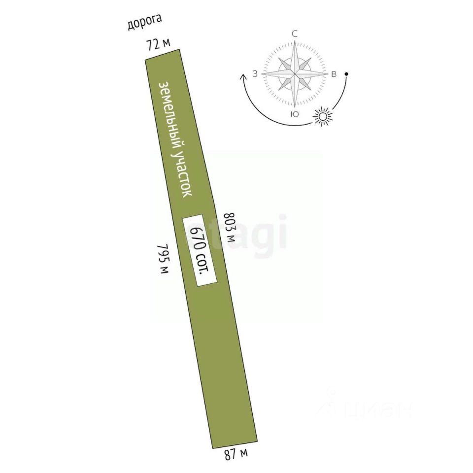 Участок прямоугольной формы,100 метров по фасаду и один километр вглубь, межевание есть.