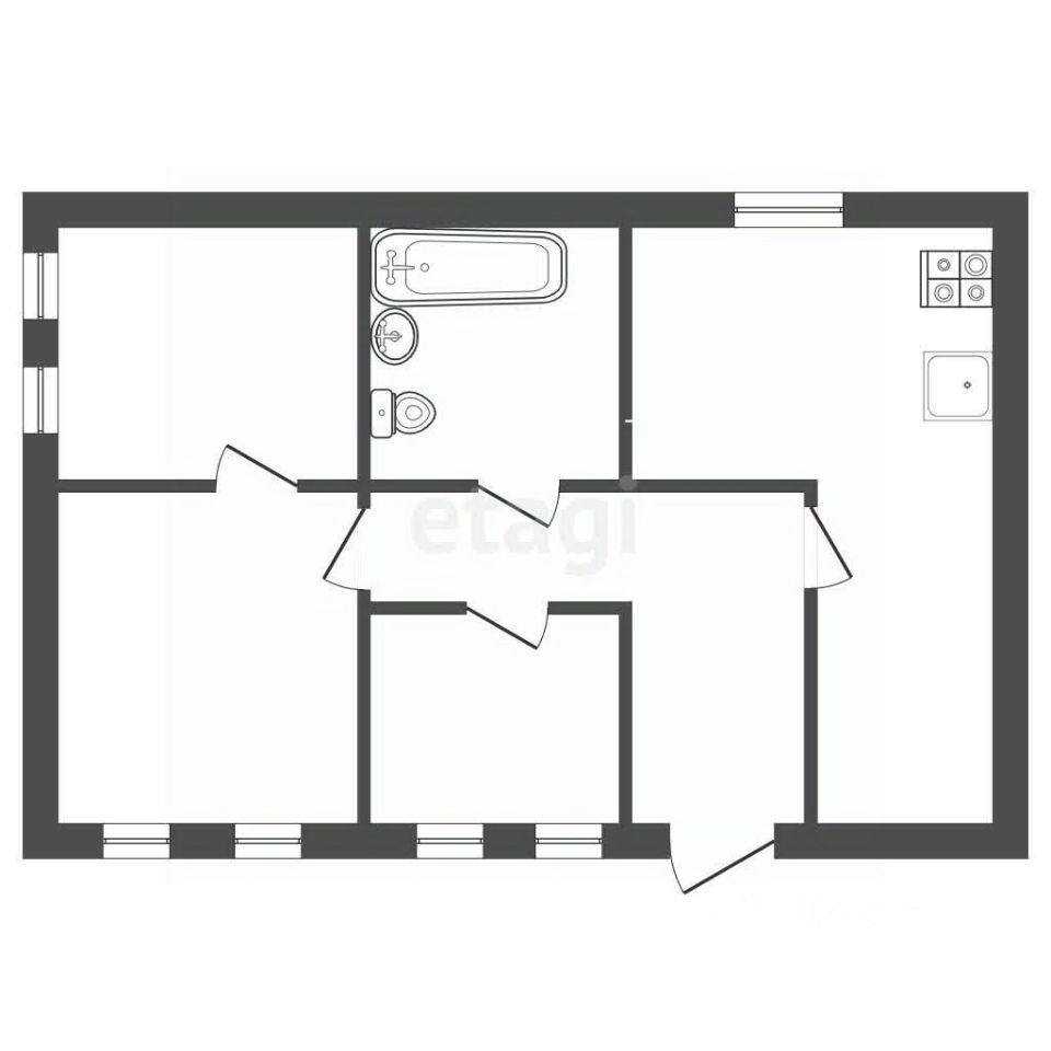 Кирпичный дом характеризуется рациональной планировкой, включающей три изолированные комнаты, просторную кухню и санузел. В доме выполнен косметический ремонт, установлены современные пластиковые окна и новые межкомнатные двери.