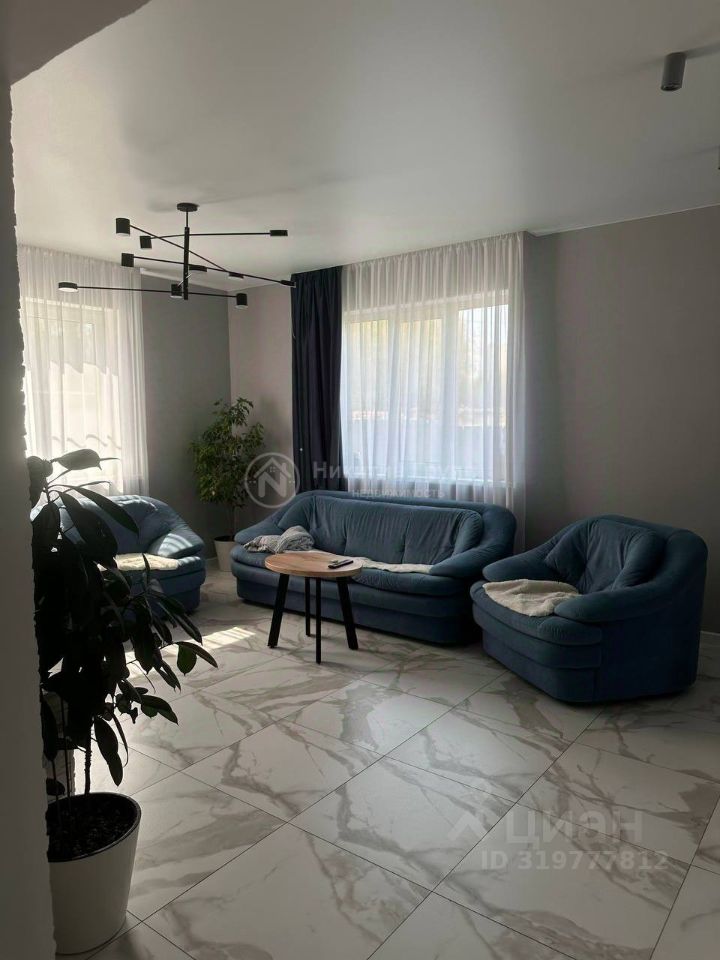 Просторный холл (24,2 кв. м) с мягкой мебелью и телевизором, что создает уютную зону для отдыха и релаксации.
