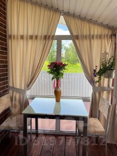 Закрытая веранда, предназначенная для комфортного отдыха на свежем воздухе, оборудованная мягкой мебелью и создающая атмосферу уединения и релаксации.