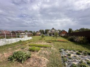 Участок ровный, прямоугольной формы. На участке имеется детская игровая площадка с горкой и качелями, теплица, плодовые деревья и кустарники, помещение для хоз.инвентаря, фундамент под баню. Ведется видеонаблюдение.