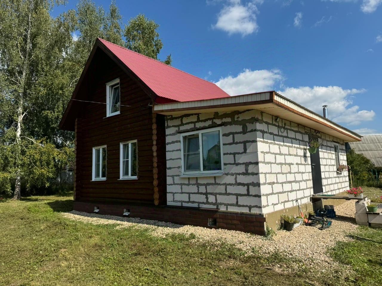 Дом 2-х этажный. Бревенчатая часть построена в 2010 году, в 2014 году пристроена вторая половина дома из газосиликатных блоков Poritep. Дом очень теплый, для круглогодичного проживания.