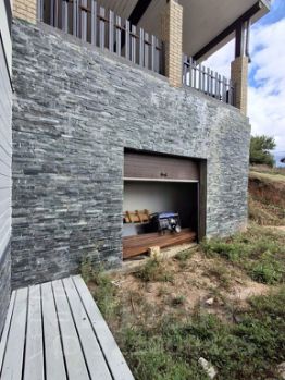 Эксклюзивная локация и вид: Дом возведен на склоне, что гарантирует абсолютную приватность и непрерывный диалог с природой через масштабное остекление. Вид на воду и окрестности становится неотъемлемой частью интерьера.