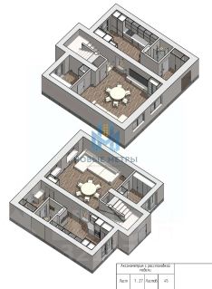 1 этаж: Просторная кухня, уютная гостиная, санузел, прихожая.