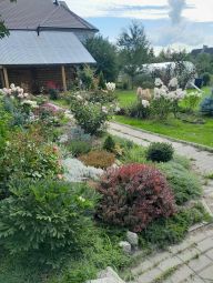 Участок 15 соток. Территория ухоженная, есть все необходимое для любителей садоводства: теплица, плодово-ягодные насаждения, цветники, альпийская горка и др.