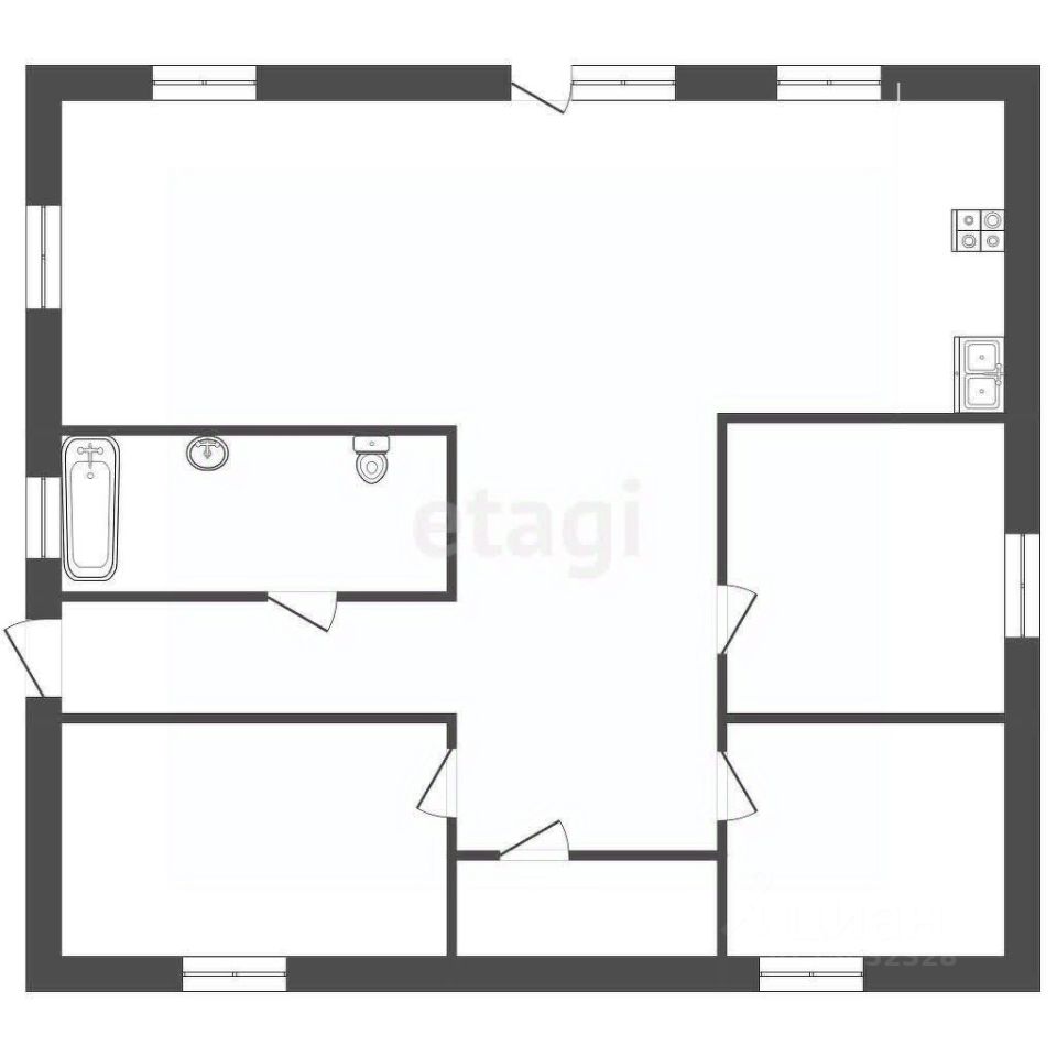 В доме 3 просторные комнаты, кухня-гостиная-мечта хозяйки, санузел, терраса.