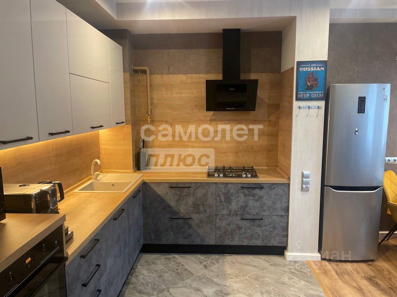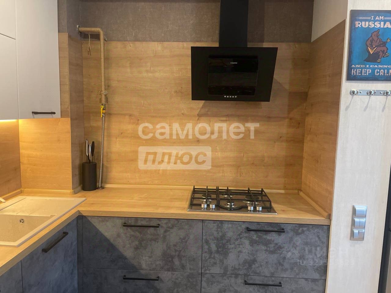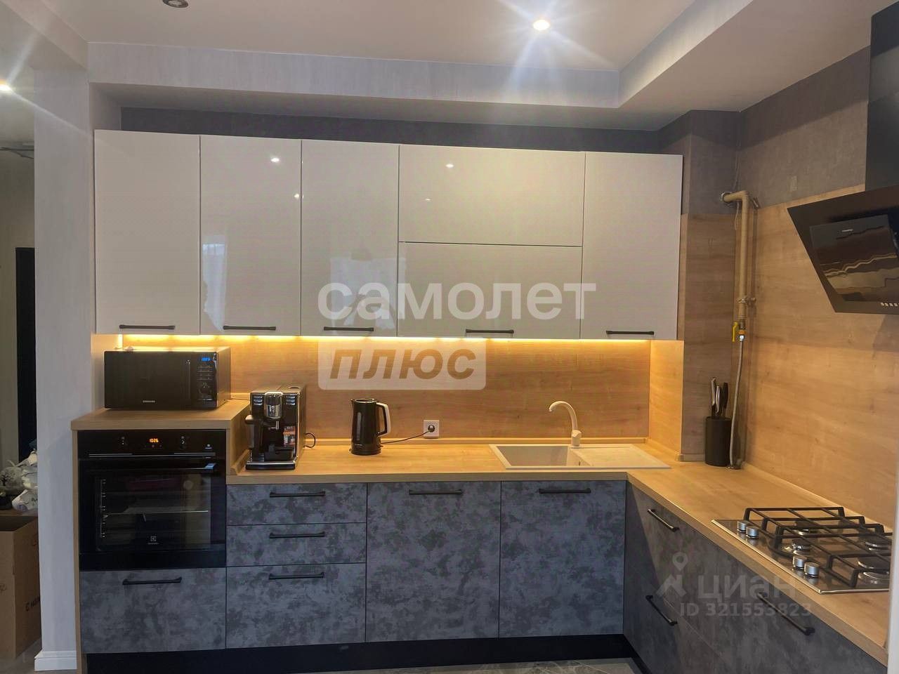 Установлен качественный кухонный гарнитур с доводчиками и большой раковиной