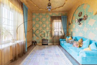 На первом этаже площадью 115 кв.м. расположена прихожая с гардеробной комнатой, гостевой туалет с душевой, гостевая комната с дровяным камином, зона - Relax в турецком стиле, гостиная со столовой зоной на 6 человек (40 кв.м.,) кухня (30 кв.м.) с со встроенной техникой Boch, Samsung, барный стол на 2 человека.