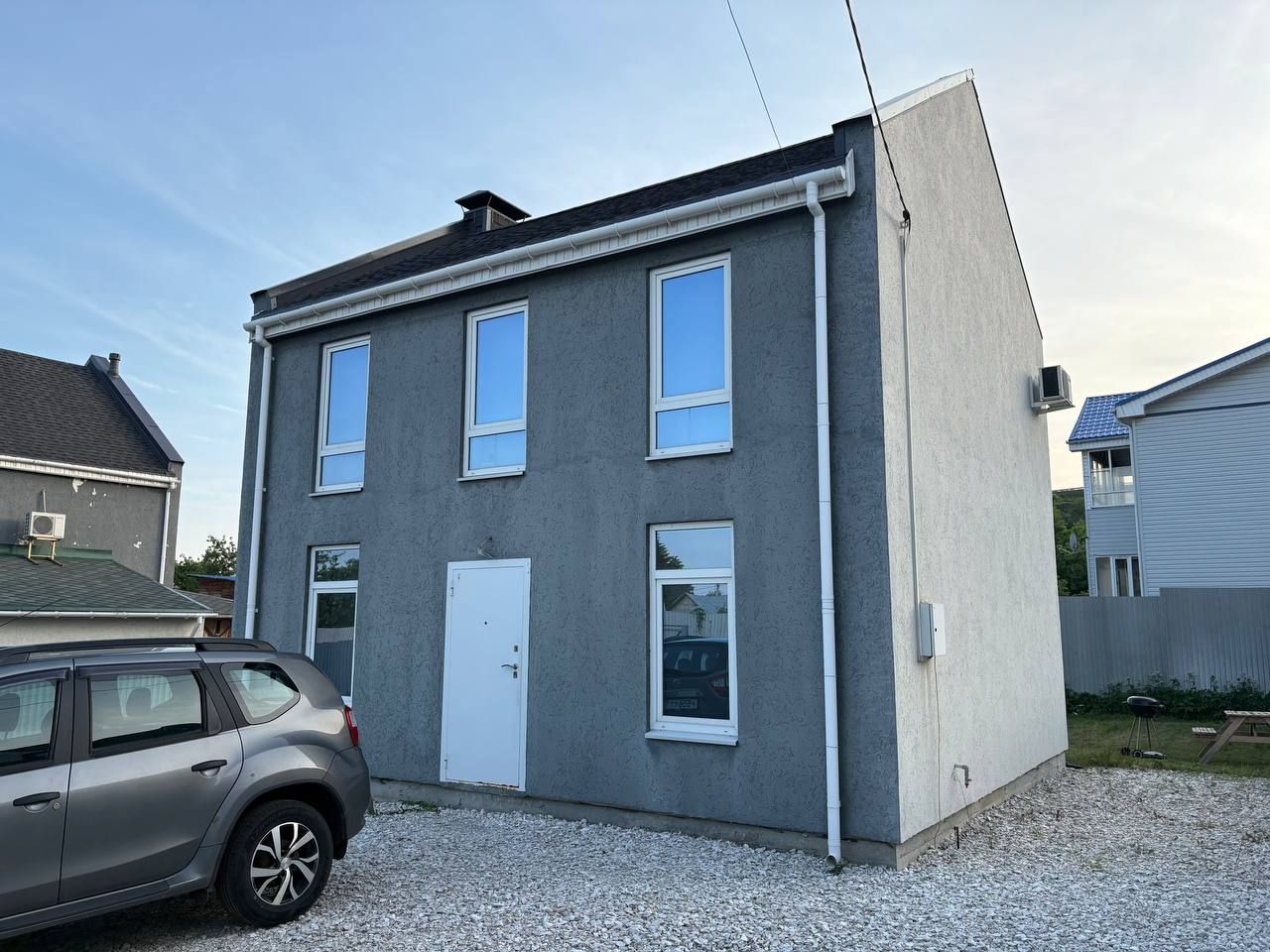 • парковка для нескольких машин, перед домом отсыпано щебнем,
