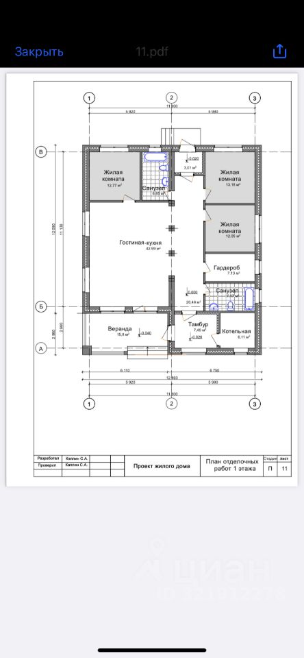 •Общая площадь дома :169 кВ м включая веранду 18кВ м.