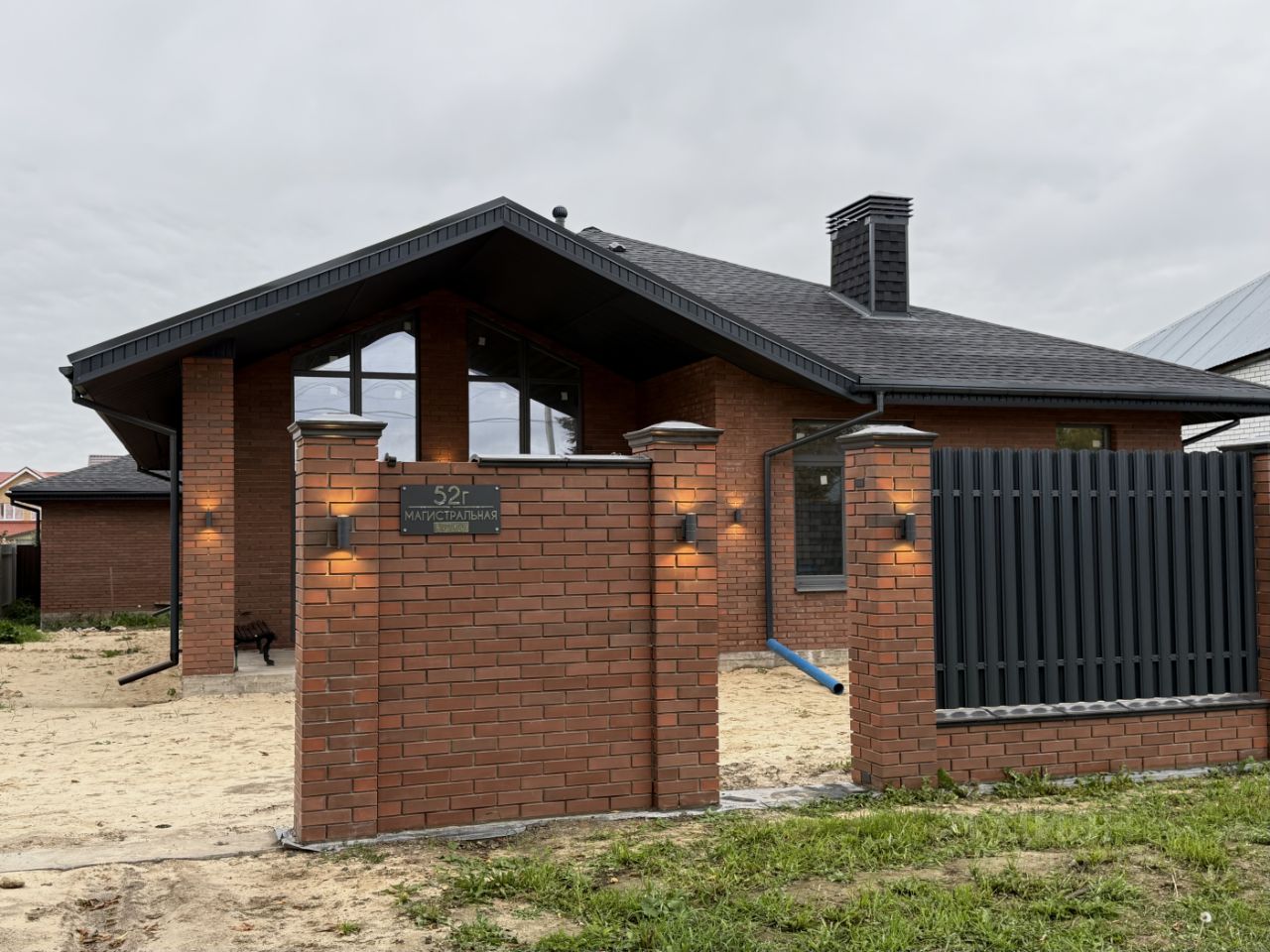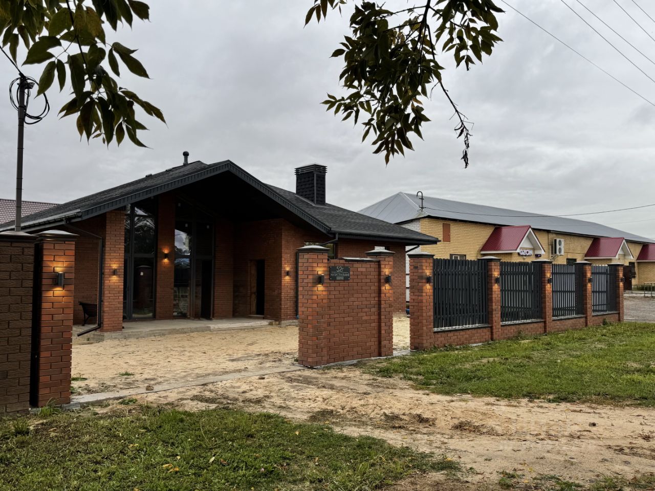 •Забор по фасадной части участка выполнен из того же кирпича , что и дом.