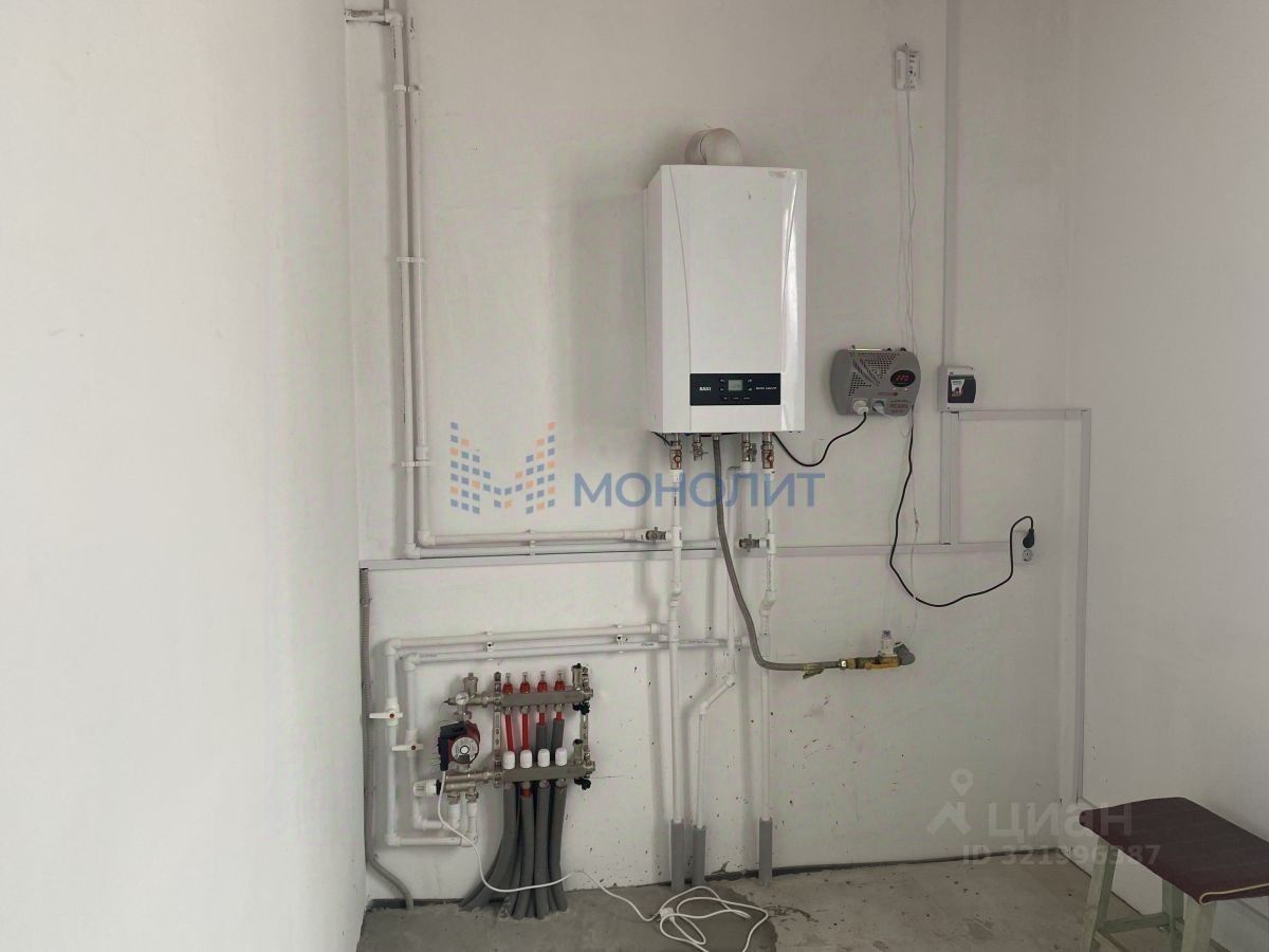 Дом выполнен из газосиликатного блока, утеплён (утеплитель 100мм), оштукатурен. Кровля- мягкая черепица. Перекрытия деревянные. Большая веранда. Внутри дома предчистовая отделка. Все коммуникации в доме: электричество, газ, водоснабжение - скважина, канализация - септик. По дому разведены теплые полы, так-же есть радиаторы,