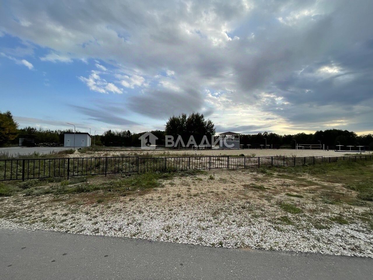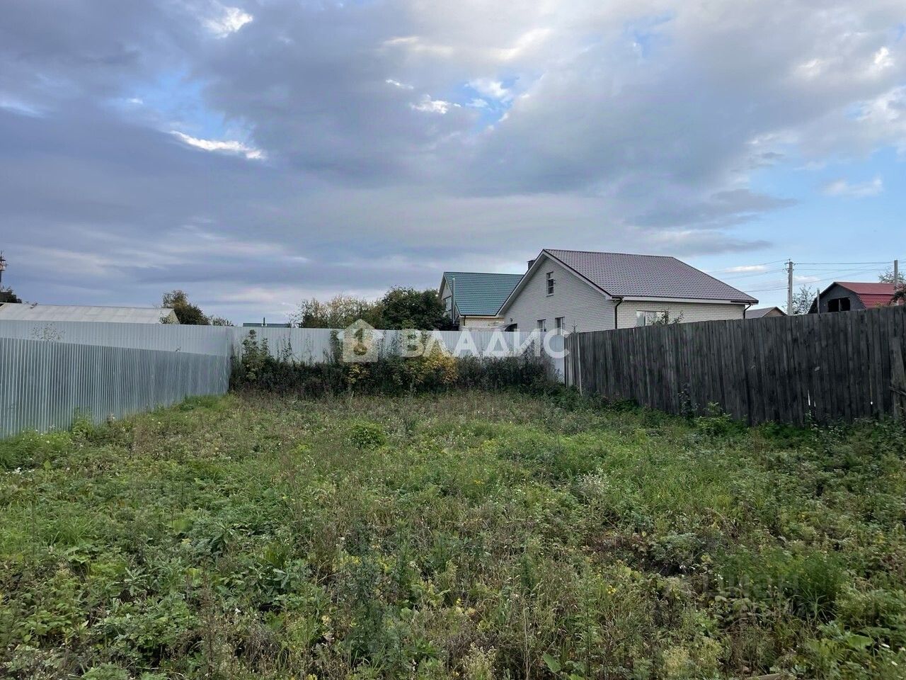 Участок огорожен забором с трех сторон .