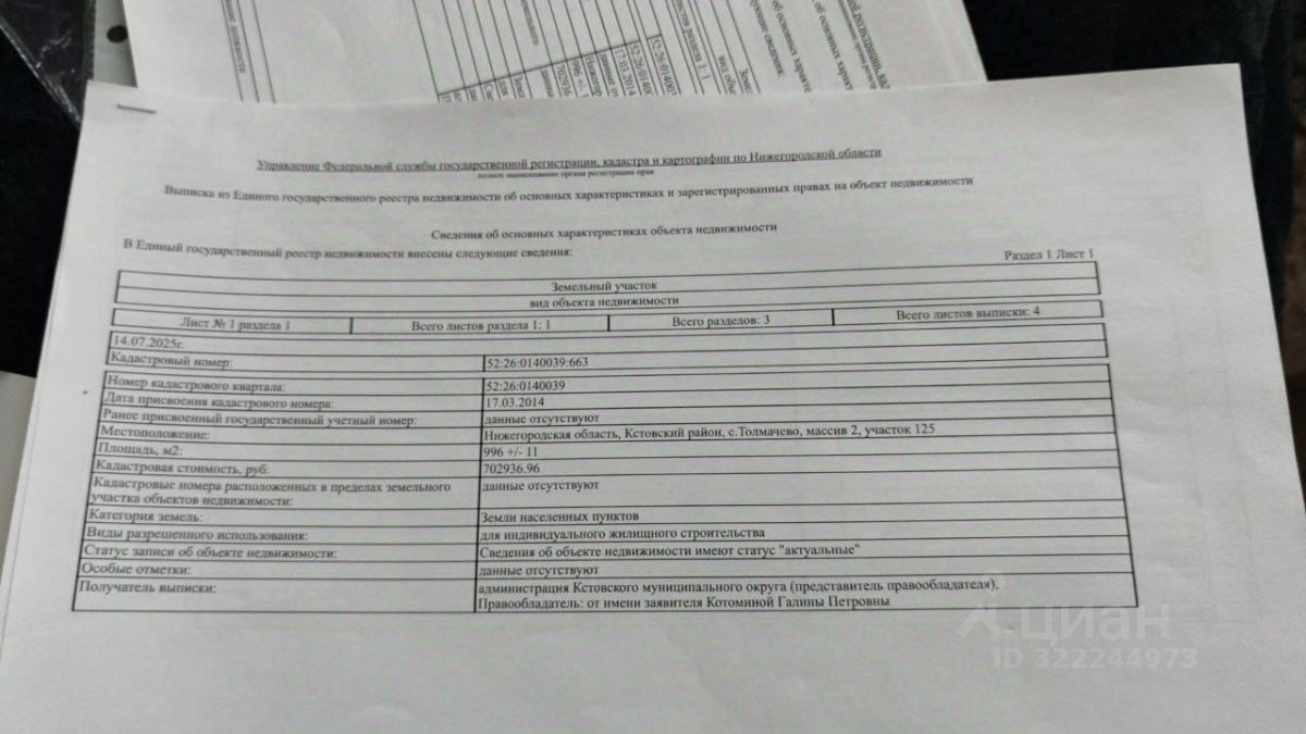 Продается земельный участок в Кстовском районе Нижегородской области с. Толмачево общей площадью 10 соток.