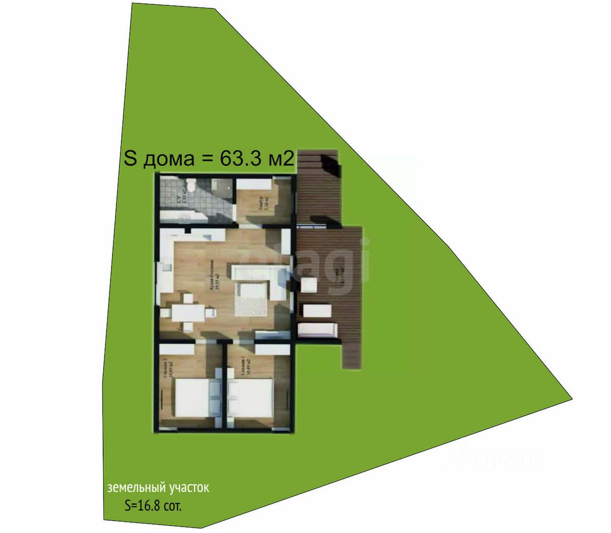 Участок 16.8 сотки, ровный и правильной формы.