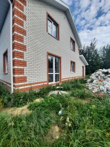 Стены дома выполнены из газосиликатного блока, с утеплением, облицованы кирпичом.
