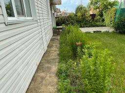 Имеется гараж (35 кв метров), ограждение по всему периметру дома из проф-листа, глубокий погреб. Ухоженный двор с газоном, цветами, хвойными и плодовыми деревьями.