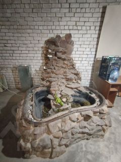 Из кухонной зоны выход в просторную гостиную, где установлен прекрасный фонтан и камин.