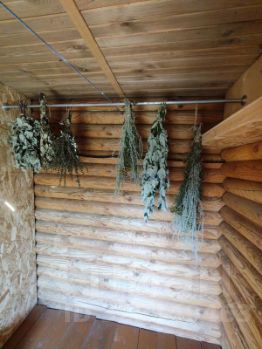 Баня сруб , очень большая с отличной печкой , которая держит кипяток два - три дня !