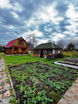 на территории участка построен деревянный двухэтажный дом
