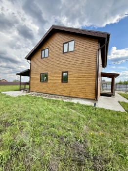 Дом построен по каркасной технологии, снаружи обшит металлическим сайдингом Grand Line (имитация бруса), двухкамерные стеклопакеты с наружной ламинацией. Внутри дом обшит гипсокартоном, утепление дома 200мм.