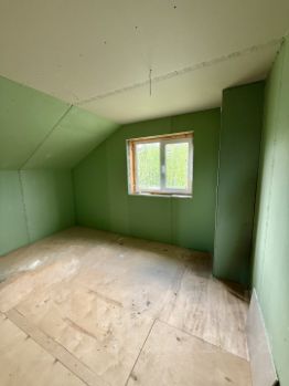 На первом этаже располагается: большая кухня-гостиная с выходом на террасу, с/у, котельная, и комната (можно использовать как гардеробную или кабинет). На втором этаже располагается три комнаты и просторный с/у.