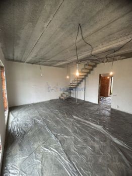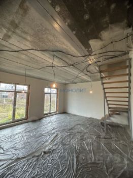 На участке имеется скважина глубиной 38 метров, электричество 15 кВт и газовое отопление. В доме проведена разводка электрики, а лестница выполнена из металлического каркаса.