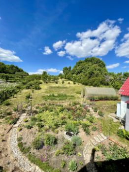 На участке расположен небольшой летний гостевой дом, есть теплица. Участок ухожен и разделен на зоны, зону огорода и сада с плодоносящими деревьями и кустарниками. Много цветников.