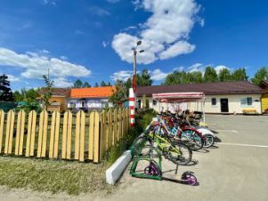 В деревне есть магазин, ходит общественный транспорт, в школу детей возит школьный автобус.